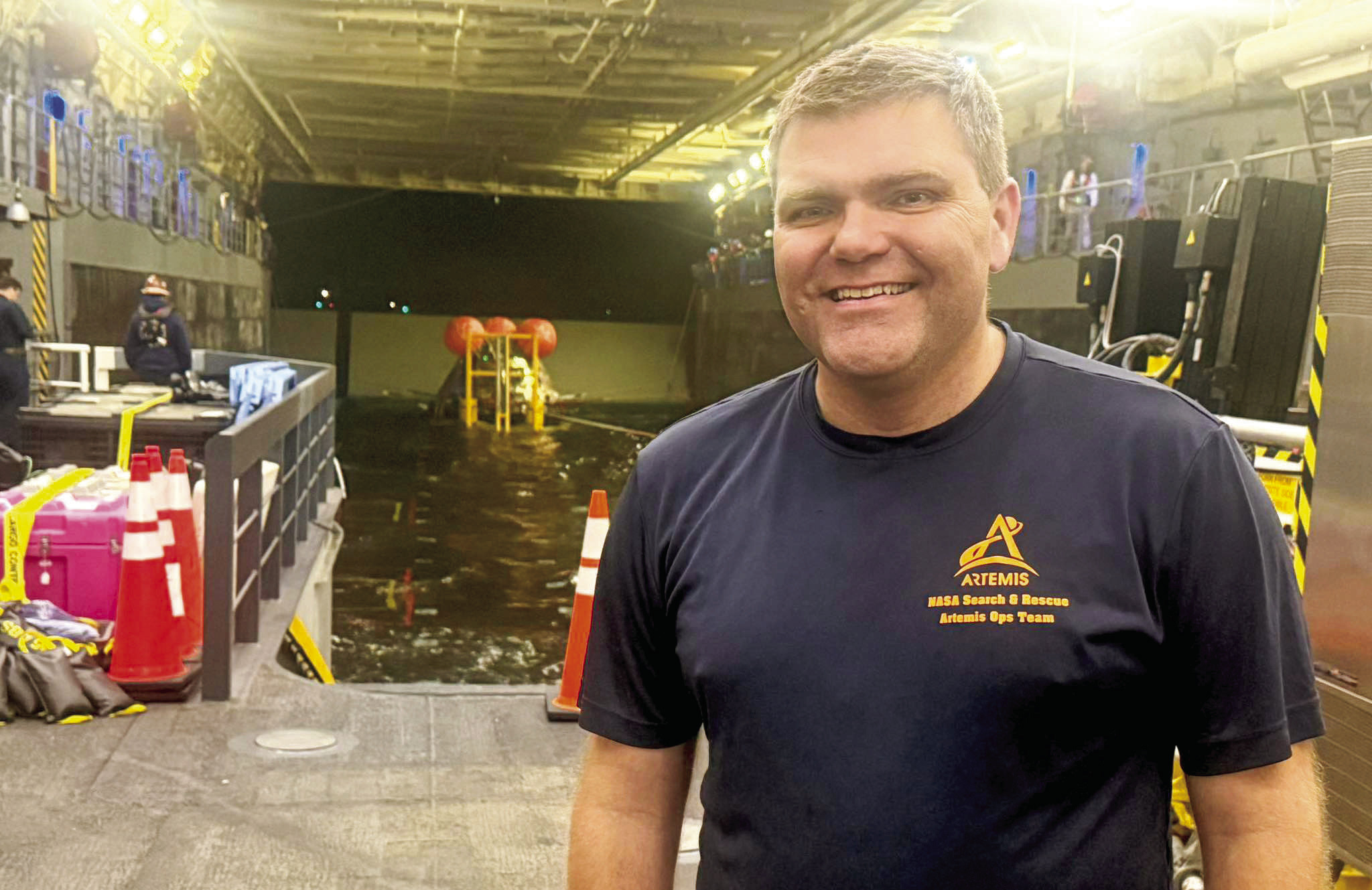 For Artemis II, Kelly was aboard the USS John P. Murtha as teams prepared to receive the returning astronauts off the coast of California.